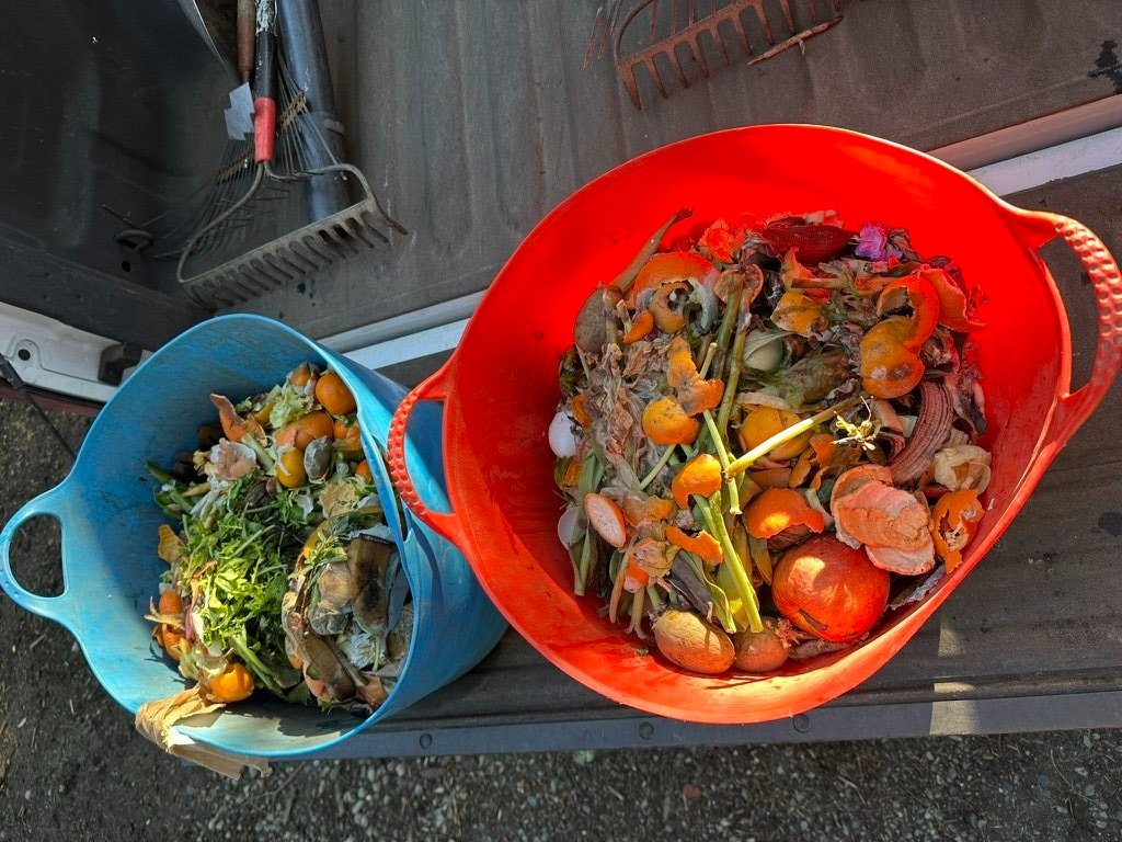 Be alert to produce stickers, rubber bands, bits of plastic, and anything else that we don’t want going back into the soil.